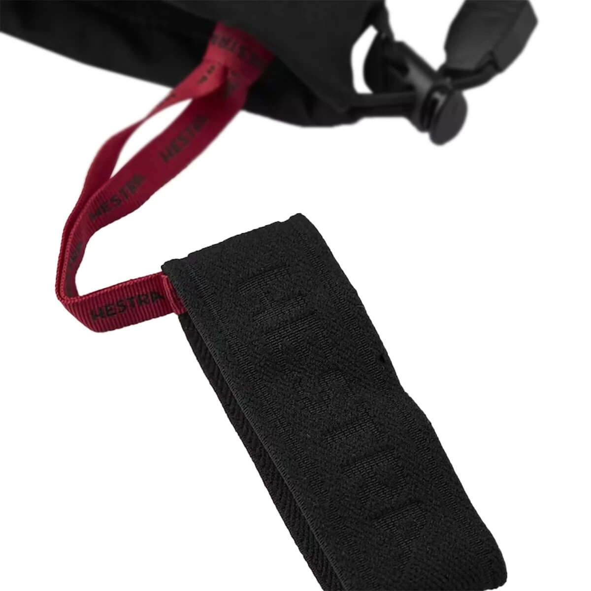 - Elastic around wrist and strap offer secure fit and lock in heat