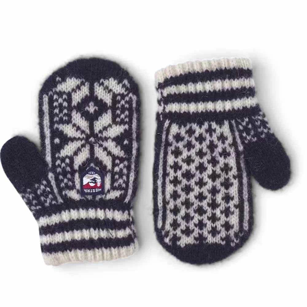 A soft and warming mitten for the very smallest adventurers. Fair Isle knitted in a wool blend in a classic Nordic pattern with a ribbed cuff. Perfect for keeping tiny hands warm at the coldest times of the year. Note: size 0 does not have a thumb.