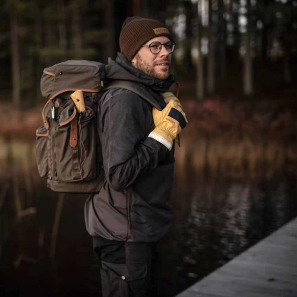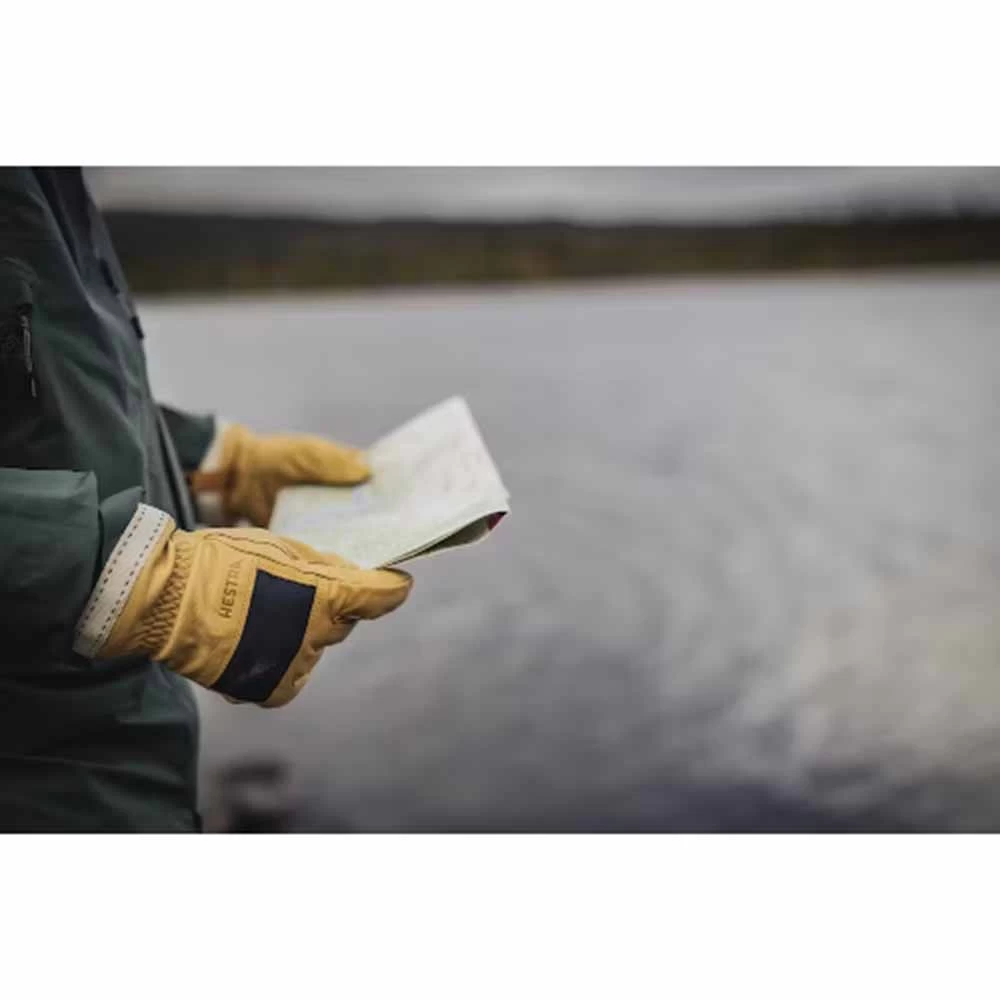 With its timeless style, Njord is a robust 5-finger leather glove in durable, natural materials. It has a removable, machine washable, knitted liner and the outer glove works on its own οΏ½ or in combination with other Hestra liners οΏ½ offering versatility in terms of functions in a single glove. Hardwearing goatskin provides protection from wind and weather, while the waxed cotton/polyester fabric on the backhand is wind and water-repellent too. It has a long cuff with decorative cotton edging. A practical, comfortable and attractive glove that will be by your side in the open air all year round for a long time to come, gaining a beautiful patina with use.